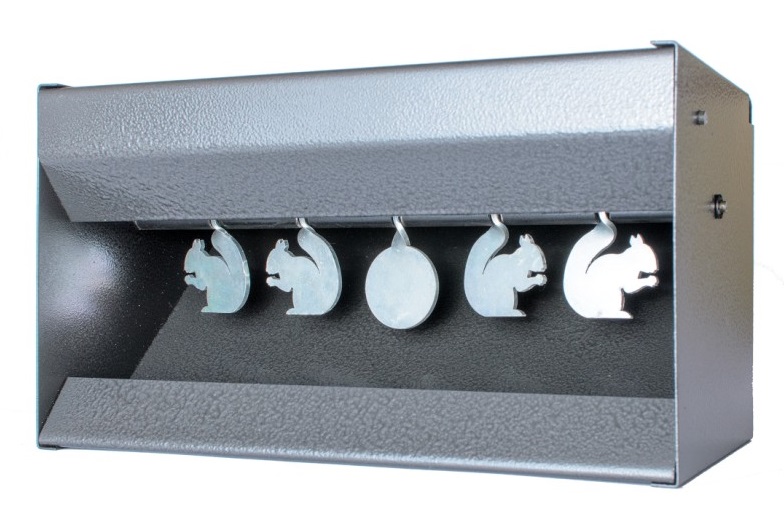 Минитир "Белки" представляет собой набор из пяти металлических медальонов, встроенных в корпус пулеулавливателя, с механизмом, который обеспечивает дистанционный сброс и восстановление исходного положения мишеней.