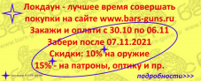 При размещении заказов на сайте www.bars-guns.ru, пожалуйста, включайте в один заказ товары из наличия только в оружейном магазине "Барс". Товары, добавленные в корзину из других наших магазинов, будут игнорироваться.