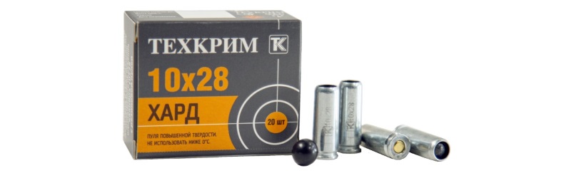 В оружейном магазине «Барс» в продажу поступил техкримовский патрон для травматического оружия в калибре 10х28 с пулей "Хард". Отличительная особенность пули - повышенная жесткость, определяет новые возможности и новые ограничения для использования этого патрона. Категорически запрещено использование при низких температурах для всех моделей травматики и в "зубастых" моделях травматического оружия при любых температурах. Причина - неизбежный выход пистолета из строя по причине застревания жесткой пули в канале ствола. В нормальных температурных условиях патроны с пулей Хард можно применять в пистолетах типа Grand Power Т-12, Тень-28 и других моделях травматики с аналогичной конструкцией ствола (отсутствие перегородок и сильных "вдавышей"). При этом патрон обеспечит повышенную кучность стрельбы, что несомненно, интересно любителям спортивной стрельбы из травматического оружия.